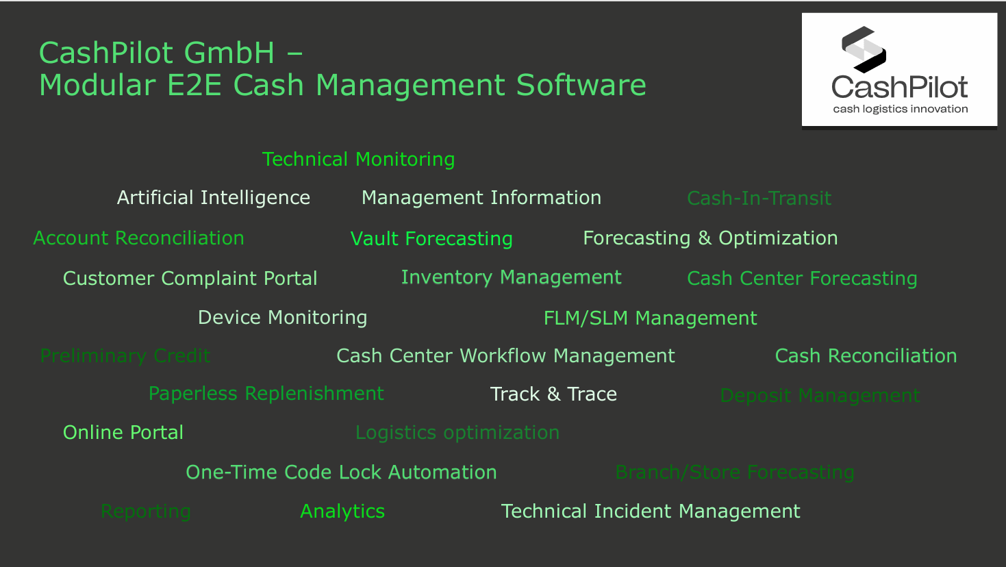 The CashPilot software suite is a real E2E solution.